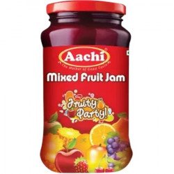 Aachi Mixed Fruit Jam Fruity Jam is described as a delicious combination of fresh fruits ingredients and gives a yummy taste when used as a spread on variety of snacks.