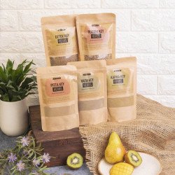 This Ayurveda Lifestyle Kit by Amrutam is the perfect way to get introduced to Ayurvedic practices and recipes. Made with herbs prescribed in the Vedas, this kit contains Ayurveda Lifestyle: The Beginning Paperback, Amrutam Jute Bag, Vata Key Herbs, Pitta Key Herbs, Kapha Key Herbs, Detox Key Herbs, Buddhi Key Herbs, Amrutam Gulkand. Dentkey Manjan, Bamboo Toothbrush, Tongue Cleaner, Ayurvedic Poster, Kayakey Oil and Madhu Panchamrut