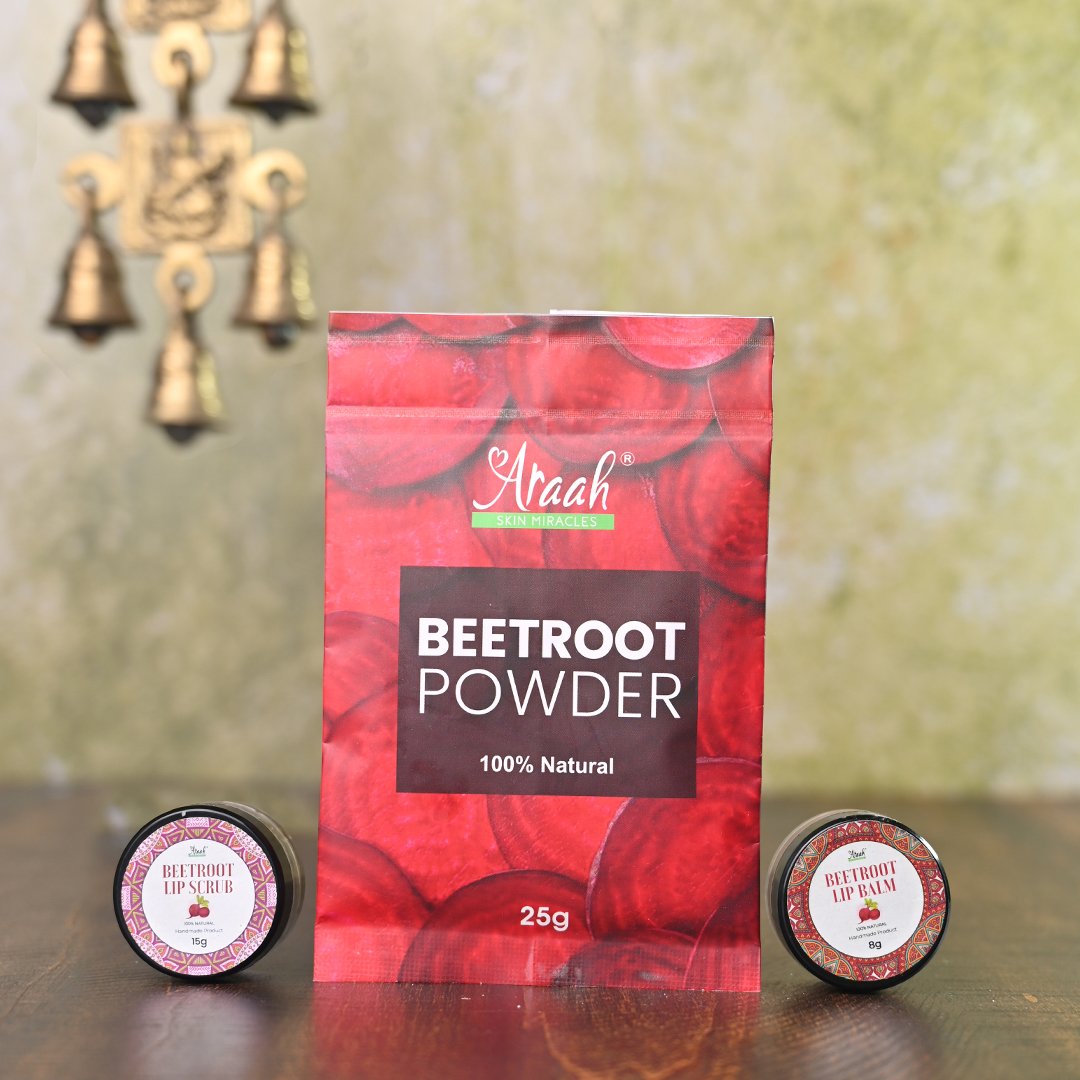 Discover the magic of beetroot and transform your lip care routine. Embrace the beauty of nature and let your lips radiate health and allure with this exquisite Beetroot Beauty Trio.Beetroot Powder: Gently exfoliate and revitalize your lips with this antioxidant-rich powder, leaving them soft and rosy.
