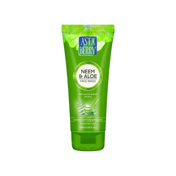 The Astaberry Neem Face Wash prevents acne, blemishes, and pimples and is based on Ayurvedic principles. The Neem Aloe vera Face Wash makes your face clear and kills germs. The neem and aloe vera face wash deep cleanses your skin and unclogs pores. Your skin looks fresh and becomes beautiful and glowing. The neem aloe vera face wash unclogs pores and removes acne and pimples from your skin. The aloe vera face wash removes dirt from your skin and makes it soft and supple.