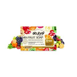 atulya Mix Fruit Soap has strong therapeutic and cleansing properties that makes skin healthy, clean and glowing. This natural handmade soap with essential oils rejuvenate your skin, removes dead skin cells, control excess oil production, and makes skin naturally glowing.