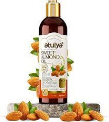 atulya Sweet Almond Oil is enriched with protein, Vitamin E, Omega-9, and fatty acids that help manages scalp infection inflammation, makes hair long safe, mend wounds & stretch marks, reduces fine lines other signs of aging, nourishes hair smoothed hair cuticles, penetrates hair shaft hydrates hair, is great for healing brittle nails, and supports hair growth.
