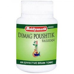 Baidyanath Dimag Paushtik Rasayan Tab. Proprietary Ayurvedic Medicine by Baidyanatha It is an Herbomineral formulation as Mental Tonic. Dimag Paushtik Rasayan Tablet acts as a brain booster or Memory Booster, basically a Sedative, soothing tonic for Insomnia, Loss of Memory, Hypertension.