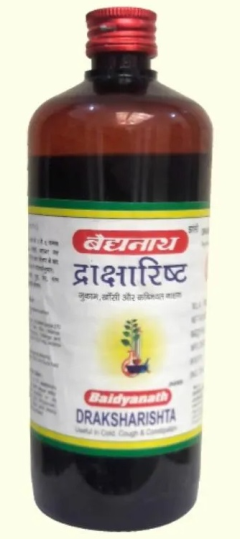 Baidyanath Draksharishta Syrup is useful for those suffering from respiratory infections including common cold, cough, bronchitis, pulmonary diseases, influenza, tuberculosis, pneumonia, and whooping cough. This Baidyanath Syrup is also indicated in constipation and general weakness.