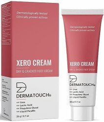Dermatouch Xero Cream is a powerful formula with potent ingredients like UREA, LACTIC ACID, PROPYLENE GLYCOL, LIQUID PARAFFIN in order to treat and repair dry & cracked feet. It also helps to eliminate corns & calluses associated while soothing & nourishing the tired feet along with long-lasting hydration.