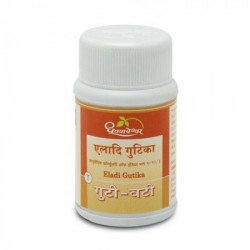 Dhootapapeshwar Eladi Gutika is an ayurvedic chewable tablet. It is primarily used to provide instant relief from sore throat, cough and itching.