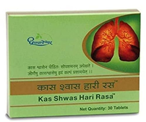 Dhootapapeshwar Kas Shwas Hari Rasa contains Shwasa Kasa Chintamani Rasa (suwarnayukta) 10 Mg, Laxmivilas Nardiya Rasa 50 Mg, Sutashekhar rasa 50 mg, Talisadi Churna 120 mg, processed in Bhawana Vasa Kwath q.s as active ingredients.