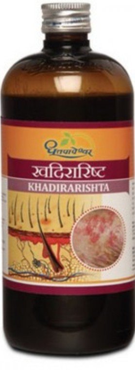 Khadirarishtam is indicated in all types of skin diseases, glandular enlargement, localized abdominal swelling or tumor, intestinal parasites/worms infestation, splenic enlargement, tumor and anemia.