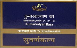 Dhootapapeshwar Kumarkalyan Rasa Premium Quality Gold contains Rasasindoor, Suvarna Bhasma, Loha Bhasma, Mouktika Pishti, Abhraka Bhasma 1 part, Suvarnamakshik Bhasma, and Bhavana - Kumari Swarasa