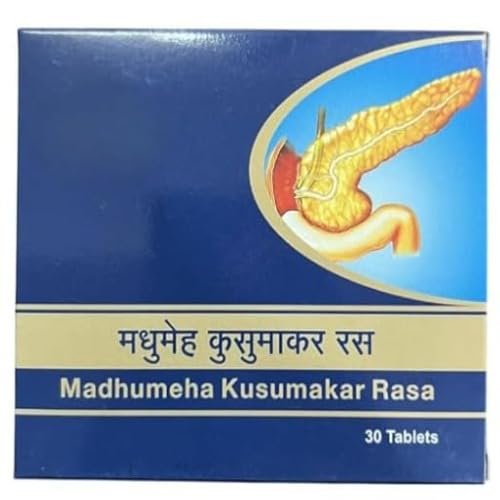 Dhootpapeshwar Madhumeha Kusumakar Rasa is a best Diabetes Medicine It is an excellent Rejuvenative and anti-aging medicineMadhumeha Kusumakar Rasa Patent formulation by Dhootpapeshwar with strong contents includes Vasant Kusumakar Rasa (with gold), Mamejjaka Ghana, Haridra, Amalaki, Guduchi, Shuddha Shilajatu, Yashada Bhasma all this is Processed in Bilva Patra Swarasa, which is the best of its kind for Madhumeha or Diabetes it might be type I or Type II and its complications. It is used in the treatment of memory loss, diabetes, and diseases related to the urinary tract. It improves memory grasping, concentration, skin complexion, strength, and immunity.