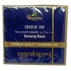 Rasraj ras is herbomineral Ayurvedic medicine. This medicine is tridoshnashak and improves strength of body. Rasraj ras is indicated in treatment of various diseases. This medicine is very useful in treating Vata diseases, especially paralysis, rheumatic pain, joint pain, facial nerve palsy etc. It is also useful in all diseases related to heart and brain. This medicine is also given for treating reproductive organ diseases in men and women. Rasraj Ras Tablet is a combination of Ras Sindoor, Makoi ras, Abhrak Bhasma, Swarna Bhasma, Lauha Bhasma, Raupya Bhasma, Bang Bhasma, Ashwagandha, Laung, Javitri, Jaiphal, Kakoli, and Ghrit kumari.