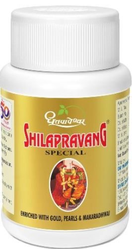 Dhootapapeshwar Shilapravang Special contains Shuddha Shilajit 40 mg, Pravala Bhasma 20 mg, Vanga Bhasma 20 mg, Suvarnamakshik Bhasma 20 mg, Guduchi Satva 20 mg, Ashwagandha 60 mg, Shatavari 15 mg etc. as active ingredients.