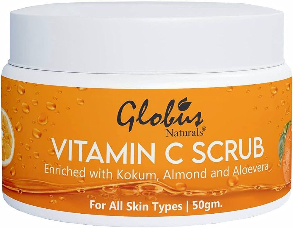 This daily radiance-revealing facial scrub gently exfoliates smoothness and lightens skin tone from the very first use. Enriched with Pearl, Kokum,Almond, Aloevera, Niacnamide, Grapes Mulberry ,Pomegranate, Liquorice. Globus Vitamin C Scrub helps reverse the effects of the harmful rays of sun and environmental damage, which cause Premature ageing & uneven Skin Tone, It helps in brightening the Skin Naturally..Vitamin C helps boost collagen production and helps fade dark spots keeping skin healthy and imparting a natural glow. It replenishes the skin with Vitamin C and antioxidants, lightens the skin giving it a youthful and glamorous radiance.