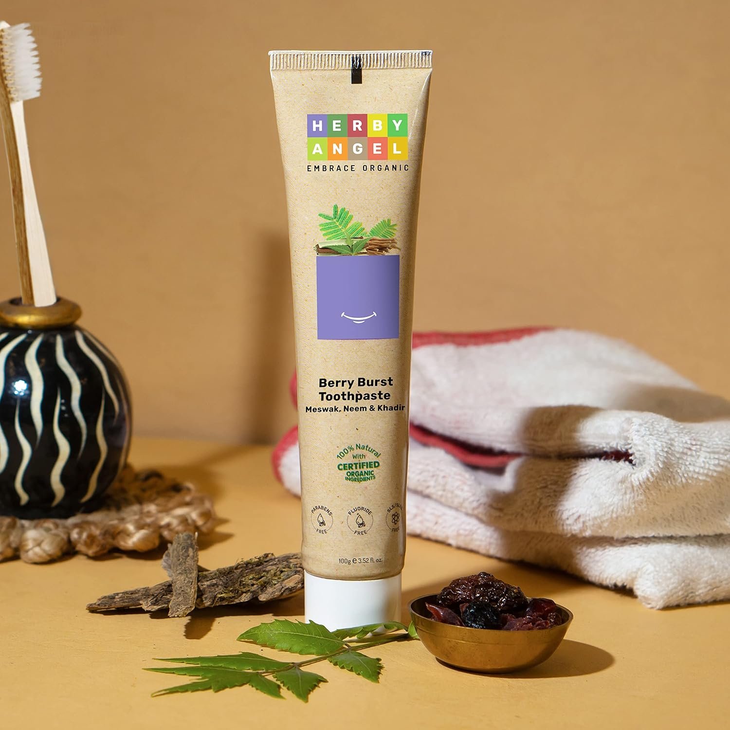 Herby Angel Berry Burst Toothpaste for Kids With Neem Khadir and Meswak :