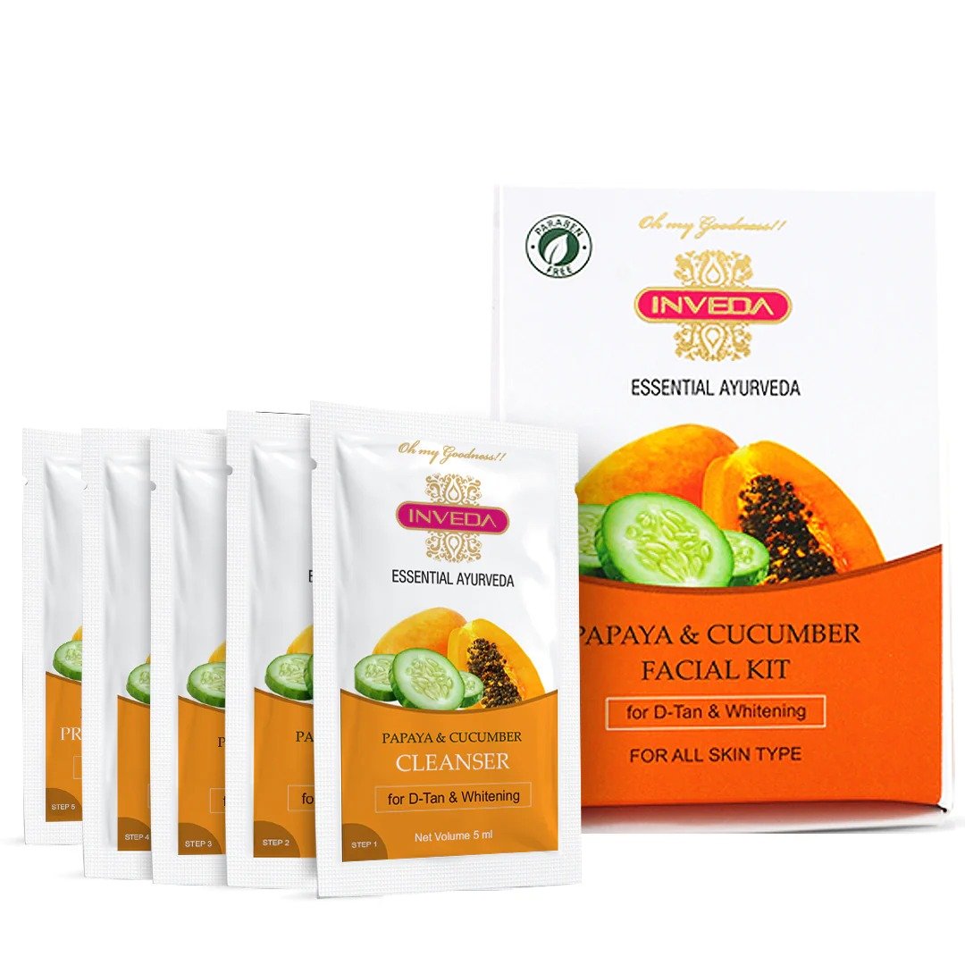 Papaya & Cucumber Facial Kit are the best friends of Skin that solve all the problems with their effective dose of vitamins. Inveda Papaya & Cucumber Facial Kit solves the dual purpose of removing unwanted tan and making your skin brighter and radiant. The kit is designed with naturally derived scientific Beta-Arbutin and other actives to complete the facial in a short time with visible results.
