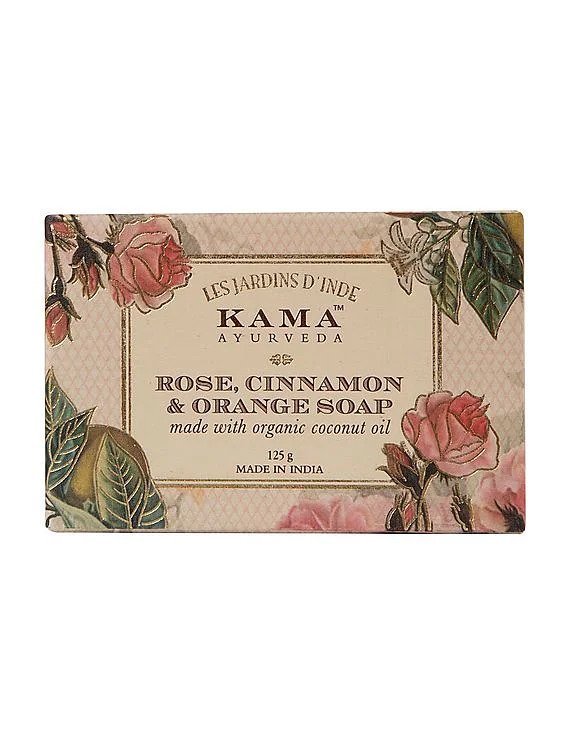 KAMA Ayurveda's Rose Orange & Cinnamon soap is a perfect blend enriched with Organic extra virgin coconut, Jojoba and Castor oil.