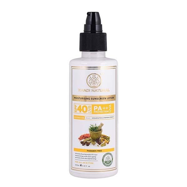 Khadi Natural Sunscreen Moisturising Lotion - Spf 40 Sunscreen is a non-greasy and fast absorbing lotion provides natural yet full spectrum protection against harmful UVA & UBA rays.