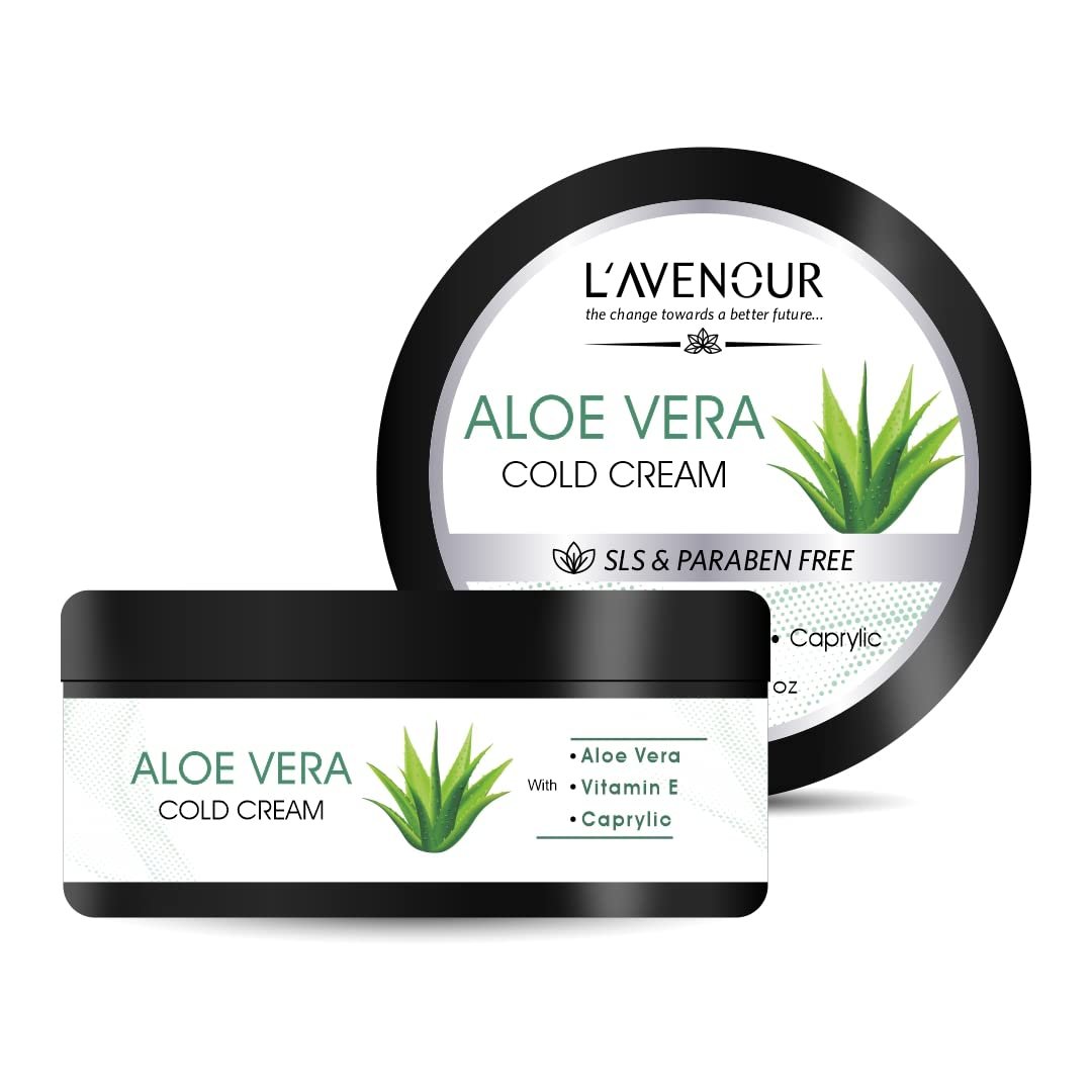L'avenour Aloe Vera Cold Cream is a nourishing skincare solution loaded with the goodness of Vitamin E, Aloe Vera, and Caprylic. This amazing product is made specifically to provide your skin delicate care and deep hydration. This natural blend of ingredients in this aloe vera cold cream creates a refreshing sensation that's unmatched. Vitamin E infusions give your skin a young look and shield it from environmental damage. Renowned for its calming effects, aloe vera soothes and hydrates the skin, leaving it silky and smooth. Caprylic's addition guarantees a texture that is light, absorbs rapidly, and doesn't leave a greasy aftertaste. This cold cream is perfect for all skin types and is devoid of SLS and parabens, so say goodbye to harsh chemicals and it's time to pamper your skin with L'avenour Aloe Vera Cold Cream and indulge in the ultimate nourishment your skin deserves.