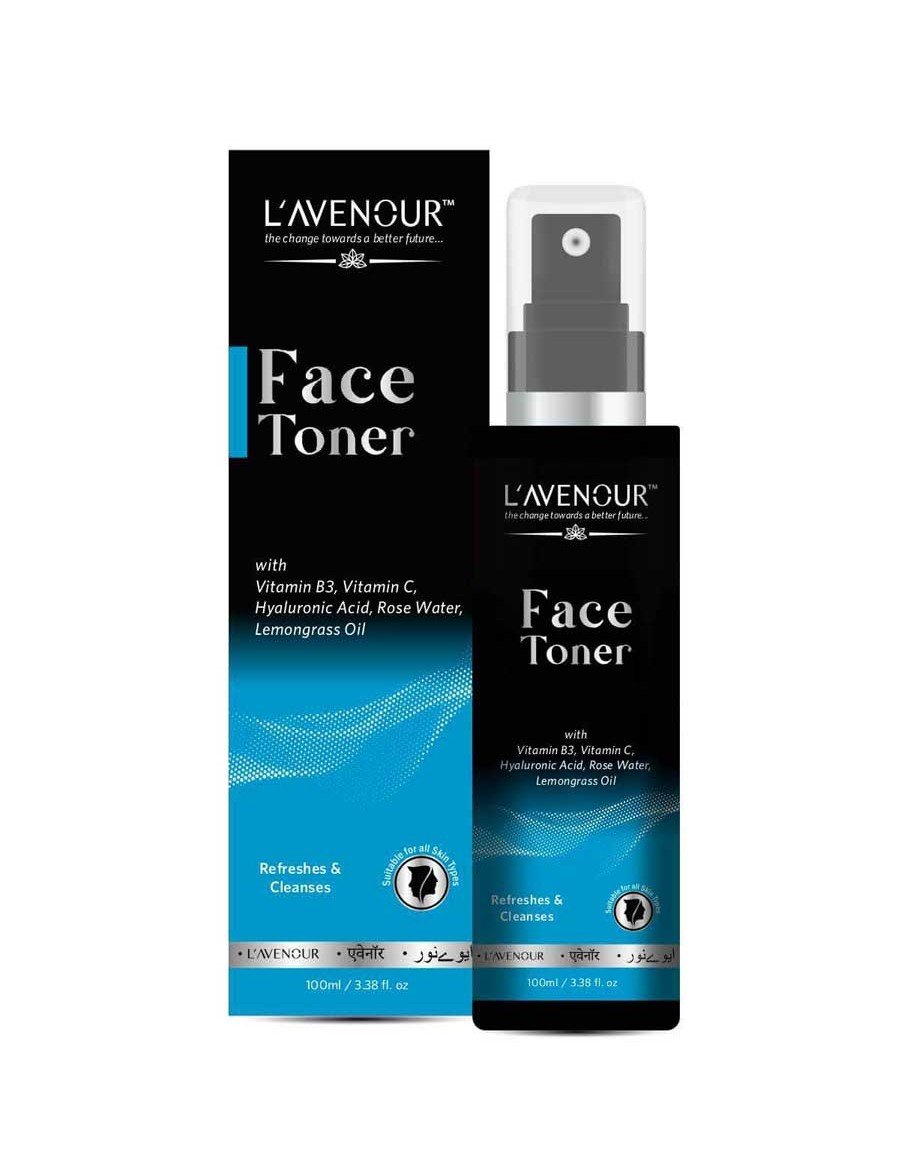 L'avenour hydrating Vitamin C Face Toner features a special blend of skin toning goodness to help keep skin toned and refreshed, this toner is enriched with the revitalizing properties of Rose Water, Lemongrass, Hyaluronic Acid, Vitamin C, and Vitamin B3. It is a vegan and chemical-free face toner that helps in restoring balance to your skin's natural pH level and treat existing skin break out and prevents the growth of acne-causing bacteria.