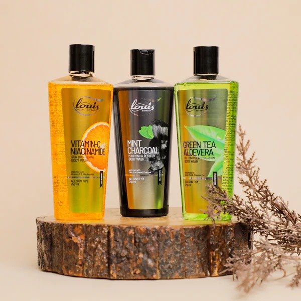 VITAMIN-C NIACINAMIDE SKIN BRIGHTENING BODY WASH - Louis Herbals Vitamin C and Niacinamide Skin Brightening Body Wash has natural powerful antioxidants that deeply cleanse your body without stripping the natural moisture of the skin. It is enriched with Vitamin C, Niacinamide, Grapefruit Extract, and Provitamin B5 that evens out discoloration and minimizes inflammation. Every wash instantly hydrated, soft, and refreshed skin.