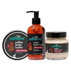 mCaffeine Body Cleansing Moisturizing Trio with Berries:Fruity berries get naughty with refreshing Coffee to form an exotic blend that’s oh-so irresistible! Loaded with Vitamin C, the cleansing, exfoliating and moisturizing trio repairs and protects against sun damage, nourishes skin, leaving behind only softness and glow!
