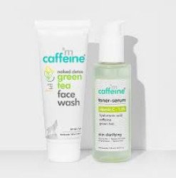 Get glowing skin right from the FIRST use with the Tone & Glow Face Routine. It contains our Toner-Serum with Vitamin C 1.5% & Green Tea, a one-of-its-kind product that combines the power of serum actives and toner in one to target dark spots, pigmentation and uneven skin tone. Together with the Green Tea Face Wash it forms the perfect 2-step routine for even-toned and glowing skin!