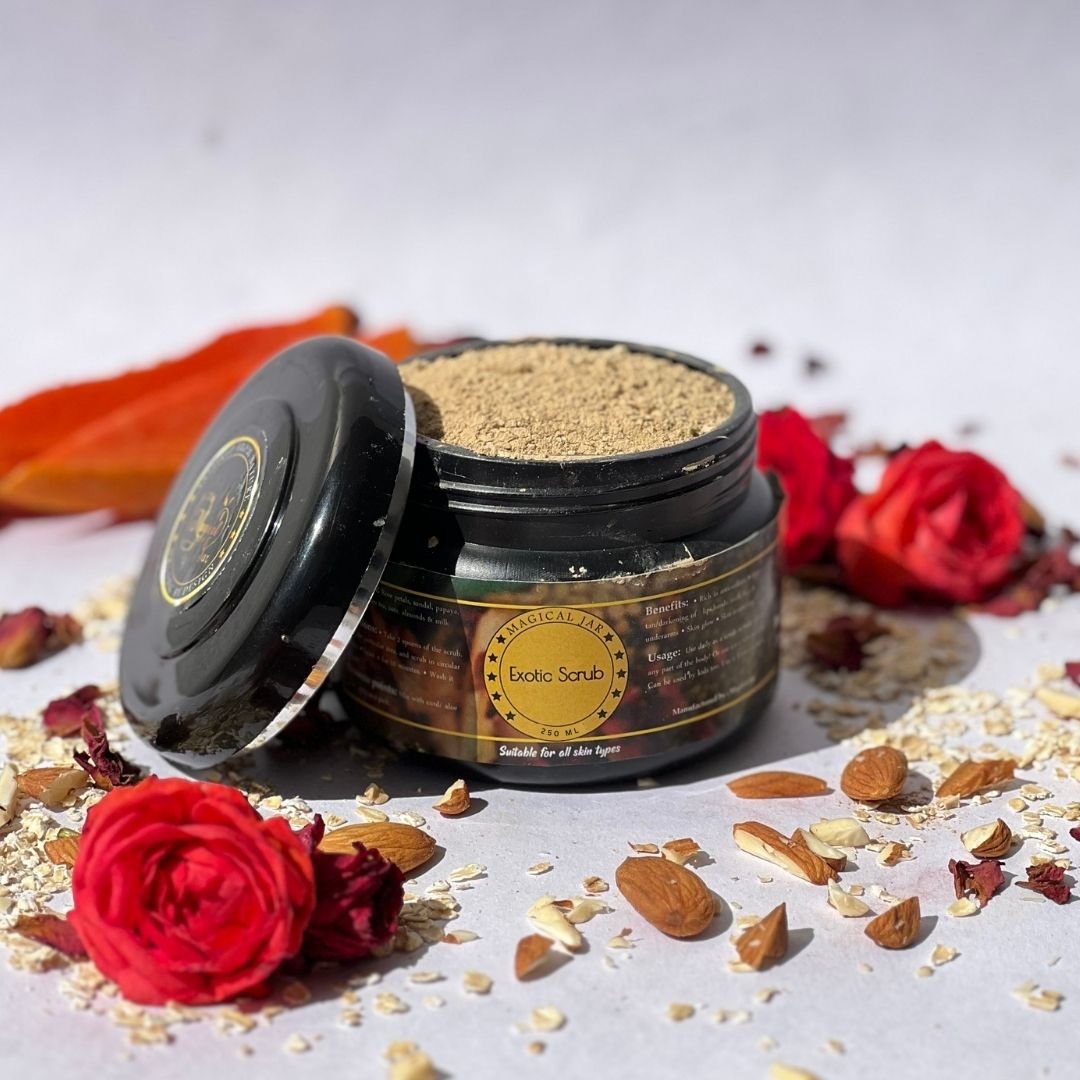 Ingredients: Rose petals, Sandalwood, Papaya, Lemon Peel, Green Tea, Oats, Almonds and Milk Powder