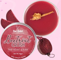 Kitchen fresh ultra moisturising Lip Butter made of Desi Ghee, Raw Honey and slow HEAT Infused beetroot & jasmine. The Beetroot Crush lip butter is packed with the goodness of fresh beetroot, jasmine, desi ghee, eucalyptus honey, kokum butter, shea butter & pure cold pressed oils for express lip repair, moisturising nourishment, lip reddening and protection against aging, and darkening. ZERO chemicals & preservatives. ZERO mineral oil & paraffins