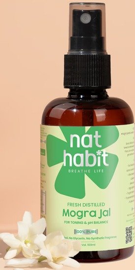 Fresh steam distilled from Mogra flowers to maximise its properties of toning and repair of damaged skin, wrinkles and pores. One of the best skin toners from Mother Nature, Mogra water is rich in anti-oxidants and anti-inflammatory agents that help repair and keep skin young for ages.