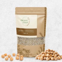 bOur Kabuli Chana, also known as chickpeas or white Chana, is grown organically, ensuring a high-quality and environmentally friendly product. It has a light beige or cream colour. The individual chickpeas are round and smooth in appearance. Kabuli Chana has a nutty and creamy flavour with a slightly earthy undertone. When cooked, it becomes soft and tender while retaining a delightful texture. Organic Kabuli Chana doesn't have a strong aroma in its raw form. However, when cooked, it emits a pleasant, appetizing scent. Kabuli Chana is a versatile ingredient that can be used in various culinary preparations, such as curries, salads, soups, and hummus.