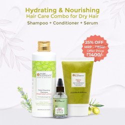 This combo contains a set of three natural products to Deep Cleanse, Nourish, Smoothen and Repair the dry hair.