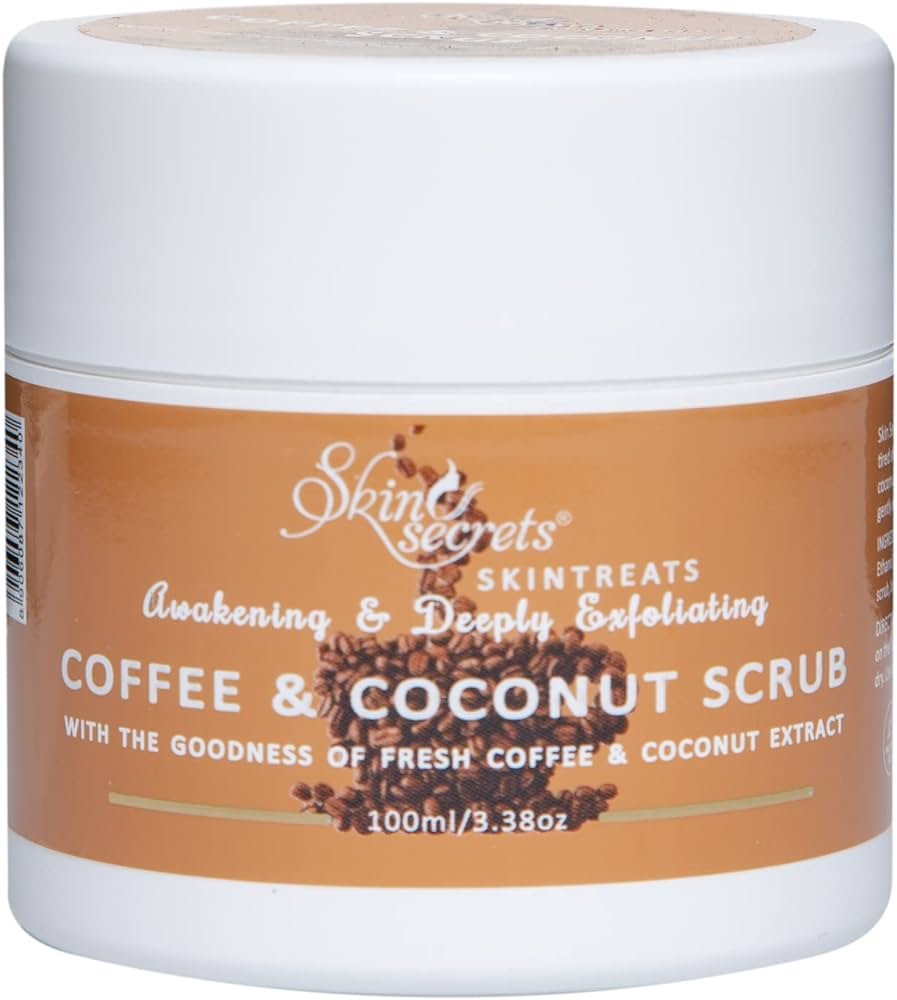 Skin Secrets awakening & deeply exfoliating Coffee & Coconut Scrub energize dull, tired skin with the smell of fresh coffee beans and deeply exfoliating 100% natural coconut extract. This Coffee Face Scrub will leave skin looking and feeling fresh. It gently exfoliates the skin from deep within leaving your skin feeling rejuvenated.