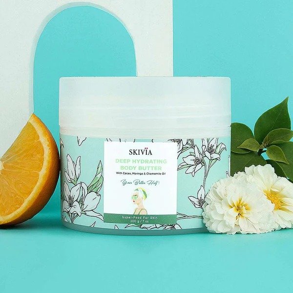 Skivia Deep Hydrating Body Butter provides nourishment to extremely dry skin & replenishes the hydration levels to make it soft & supple. It is enriched with cocoa butter, shea butter & other beneficial ingredients that improve the skin’s elasticity & reduce the appearance of scars. Skivia Deep Hydrating Body Butter gives your skin intense nourishment & moisturization and leaves it feeling softer, smoother & fragrant. The added benefits of moringa help in fading out blemishes & give an even skin tone. Chuck out your dry skin worries & rely on Skivia Deep Hydrating Body Butter to make your skin supple with every use. This body butter is a ‘Made In India’ product from the House of Clovia that contains no nasty chemicals and is free from paraben and sulphate.