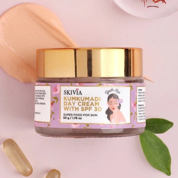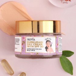 Skivia Kumkumadi Day Cream is enriched with raspberry oil which is notable for its natural SPF abilities. This oil shields your skin from damages like sunburn, tan & even premature ageing. Skivia Kumkumadi Day Cream is infused with kumkumadi oil; a natural formation of 23 precious herbs & oils that make your skin look brighter, youthful & radiant. This cream has a lightweight formula, ideal for everyday use. Apart from effective sun protection, this day cream helps fade away dark spots, fine lines & pigmentation. Skivia Kumkumadi Day Cream SPF-30 is a ‘Made In India’ product from the House of Clovia that contains no nasty chemicals and is free from paraben and sulphate.