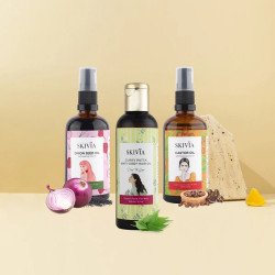 Skivia Natural Hair Oil Combo contains Skivia Castor Carrier Oil (100 ml), Skivia Onion Seed Carrier Oil (100 ml) & Skivia Curry Patta Anti-Grey Hair Oil (100 ml). Skivia Castor Carrier Oil is extracted from castor seeds through the cold-pressed method which maintains its integrity. Castor oil is packed with antioxidants, vitamin E, and fatty acids that are essential for hair & skin health. Skivia Onion Seed Carrier Oil is obtained by a cold-pressed process that keeps all essential nutrients of the oil intact. It is loaded with vitamins C, B6, folate and essential minerals like iron, potassium and magnesium. This oil contains potent anti-bacterial & anti-fungal properties. It contains a rich amount of sulphur, which reduces hair fall, breakage & thinning. Skivia Curry Patta Anti-Grey Hair Oil contains a rich blend of natural ingredients like curry patta, amla, brahmi & sunflower oil. It improves the overall appearance of your hair besides restoring the hair’s natural pigment. It provides strength to the hair from the roots to the tips. These products are suitable for all hair types & are gender-neutral. These products are ‘Made in India’ from the House of Clovia and are free from nasty chemicals, paraben & sulphate.