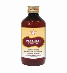 Varanadi kashayam tablet is an adaptation of the ‘varanadi gana’ consisting of a group of drugs which balance the kapha and vata elements in the body. Together the drugs clear obstructed channels and facilitates unobstructed movement of vata and body fluids. Widely used in managing headaches with gasrtic origin and diseases