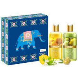 This traditional gift box, delicately crafted and made by hand, consists of authentic herbal Shower gels that have been made using rich Indian oils, herbs and plant extracts. This exotic combination of Lemon and Olive in a single box ensures that the skin remains fresh smelling and dirt free throughout the day after a relaxing shower.