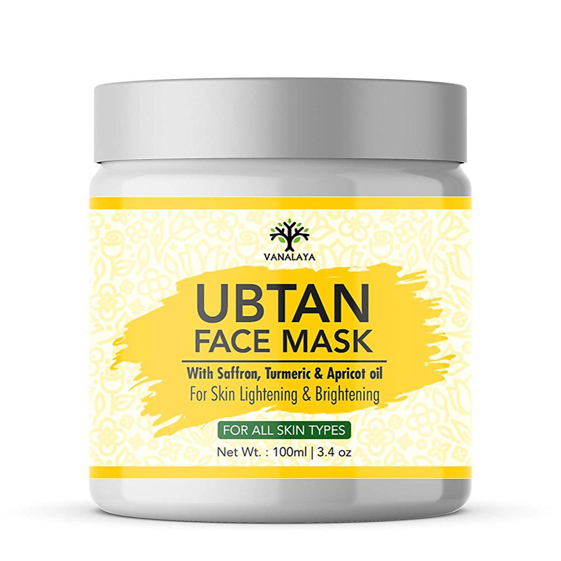 Vanalaya Ubtan face mask for Fairness, Tanning & Glowing Skin with Saffron, Turmeric & Apricot Oil Detan mask 100 ml Ubtans are 100% natural cleansers that have been used for clear beautiful skin, for centuries in India. The SoundaryaUbtan is a gentle exfoliating treatment that is prepared with a myriad of sun-dried and hand-pounded herbs including Fennel Seeds, Star Anise, Fenugreek, Saffron, and Lemon Peel for deeply cleansing and illuminating the skin.