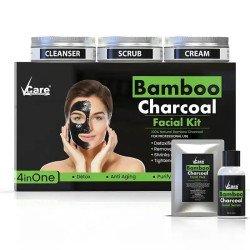The VCare Bamboo Charcoal Facial Kit is specially formulated with activated bamboo charcoal, known for its excellent skin-detoxifying properties. The best facial kit for women and men contains a cleanser, scrub, cream, face pack, and serum that work together to cleanse, exfoliate, and nourish your skin, leaving it looking radiant and healthy. It removes excess oil, and impurities and brightens the skin. This facial kit is suitable for all skin types and is free from harmful chemicals.