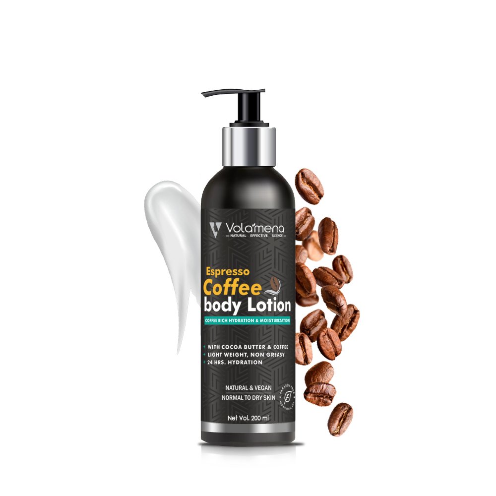 Volamena Coffee Body Lotion is Ultra hydrating Body lotion based on unique, active body tonic formula immediately regenerates and invigorates skin, protecting it against excessive dryness.