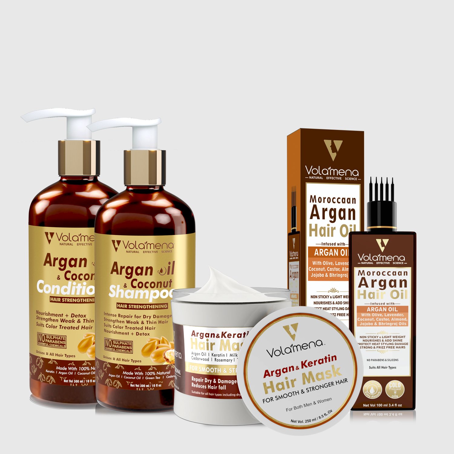 Volamena Organics Argan Oil Strengthening Hair Care Kit Pack includes 4 amazing products Argan Hair oil, Argan keratin mask, argan shampoo & Conditioner