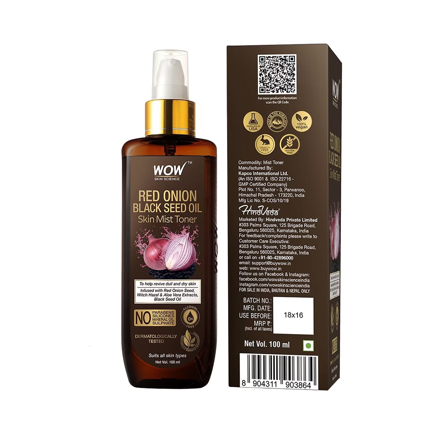 Rejuvenate your tired, aging skin with WOW Skin Science Red Onion Black Seed Oil Skin Mist Toner. It is a hydrating, reviving and repairing facial mist to help you get dewy youthful skin. This spray offers you the dual benefit of toner and mist. It aids in minimizing pores and firming up skin and also delivers instant moisture to dehydrated skin.