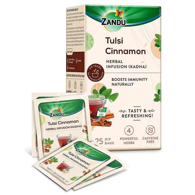 Zandu Tulsi Cinnamon Ayurvedic Infusion Tea:Tea break at any time & every time is the right break from everyday busy lifestyles. Zandu has developed Tulsi Cinnamon Ayurvedic Infusion which is unique in itself, unlike most other variations of tea